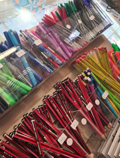 Glue, feathers, glitter, fabric pens, googly eyes and much more in our craft supplies.